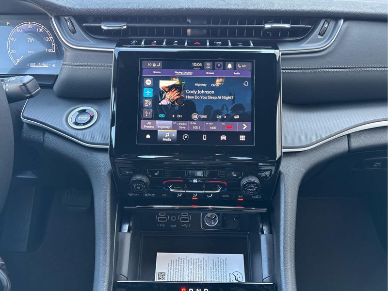 Engine: 3.6L V6 24V VVT UPG I w/ESS, Transmission: 8-Speed Automatic (8HP50), Altitude X, Selectable Tire Fill Alert, Remote Start System, Rain Sensitive Windshield Wipers, Wireless Charging Pad, Heated Front Seats, Black Headliner, Power Sunroof, Delete Laredo Badge, 3rd Row Charge-Only USB Ports, 115V Auxiliary Power Outlet, Gloss Black Exterior Accents, Heated Steering Wheel, Power Liftgate, (STD), (STD).