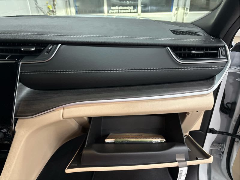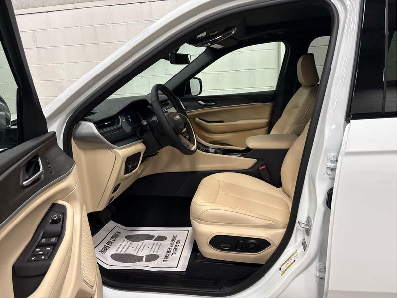 Navigation, 4x4, Power Liftgate, Heated Driver Seat, Heated Rear Seat. Jeep Limited with Bright White Clearcoat exterior and Wicker Beige/Black interior features a V6 Cylinder Engine with 293 HP at 6400 RPM*.