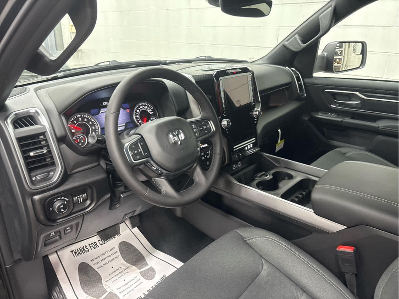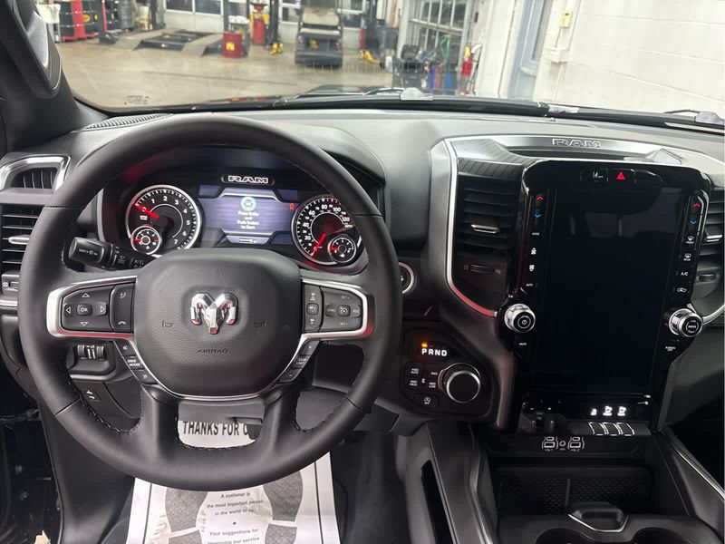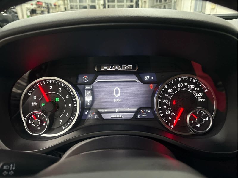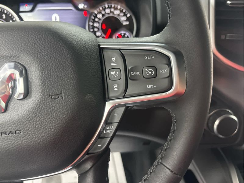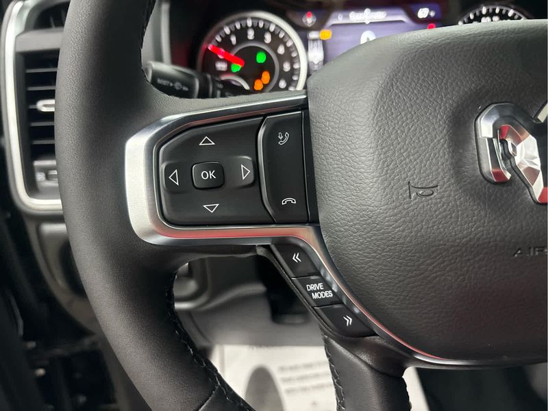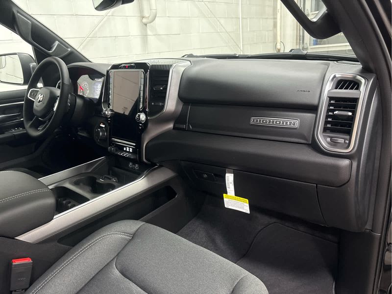 BIG HORN LEVEL 2 EQUIPMENT GROUP Google Android Auto, Power Adjustable Pedals, Leather Wrapped Steering Wheel, 12 Touchscreen Display, Glove Box Lamp, Auto Power-Folding Mirrors, 115V Auxiliary Rear Power Outlet, Media Hub w/2 Charge Only USBs, Heated Front Seats, Security Alarm, Black Premium Power Mirrors, Apple CarPlay, Premium Overhead Console, 9 Amplified Speakers w/Subwoofer, Remote Tailgate Release, 115V Auxiliary Power Outlet, LED Dome Lamp w/On/Off Switch, Universal Garage Door Opener, 2nd Row In Floor Storage Bins, Sun Visors w/Illuminated Vanity Mirrors, LED Footwell Lighting, Power 2-Way Driver Lumbar Adjust, Rear Window Defroster, Rear View Auto Dim Mirror, Rear Power Sliding Window, GPS Navigation, Overhead LED Lamps, Auto Dim Exterior Driver Mirror, SiriusXM w/360L, NIGHT EDITION Tires: 275/55R20 OWL All Season, Accent Color Premium Power Mirrors, Exterior Mirrors w/Supplemental Signals, Black Headlamp Bezels, Exterior Mirrors Courtesy Lamps, Grille Black Surround Black Mesh, Auto Power-Folding Mirrors, Wheels: 20 x 9.0 Aluminum Painted Clad, Auto Dim Exterior Driver Mirror, Black Exterior Truck Badging, Anti-Spin Differential Rear Axle, Accent Color Door Handles, Accent Color Tailgate Handle, Black Interior Accents, Body Color Front Bumper, Body Color Rear Bumper w/Step Pads, Black Tail Lamp Bezels, RAM Grille Badge - Black, Black Painted Exterior Mirrors Caps, TRANSMISSION: 8-SPEED AUTOMATIC (850RE) (STD), ENGINE: 3.6L V6 24V VVT ETORQUE UPG I (STD), BLACK, DELUXE CLOTH BUCKET SEATS Bucket Seats, Full Length Floor Console, Power Adjust 8-Way Driver Seat, Rear Center Armrest, Power 2-Way Driver Lumbar Adjust.