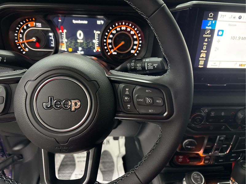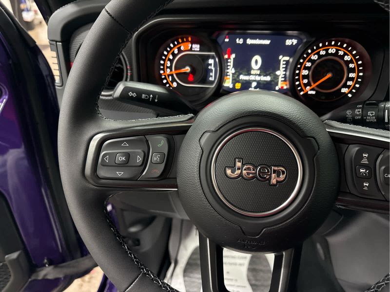 8-SPEED AUTOMATIC 850RE TRANSMISSION Adaptive Cruise Control w/Stop, Selec-Speed Control, XTREME 35 TIRE PACKAGE LT315/70R17C 113/110S Tires, Wheel Flare Extensions, MOPAR Tire Relocation Kit, Anti-Lock 4-Wheel Disc Perf Brakes, 35 Tire Suspension, MOPAR Hinge-Gate Reinforcement, MOPAR Jack Spacer, 17 x 8 Machined Wheels w/Black Pockets, 4.56 Rear Axle Ratio, 6,250 lbs GVWR, BODY COLOR 3-PIECE HARD TOP Freedom Panel Storage Bag, Rear Window Defroster, Rear Window Wiper/Washer, BLACK, NAPPA LEATHER SEATS Leather Wrapped Shift Knob, Premium Door Trim Panel, Power Adjust 8-Way Driver Seat, Power 4-Way Passenger Lumbar Adjust, Power Adjust 8-Way Front Passenger Seat, Leather Wrapped Park Brake Handle, Power 4-Way Driver Lumbar Adjust, SAFETY GROUP ParkSense Rear Park Assist System, Auto High Beam Headlamp Control, Blind Spot & Cross Path Detection, ALPINE PREMIUM AUDIO SYSTEM, TECHNOLOGY GROUP Integrated Off-Road Camera, HD Radio, Rear View Auto Dim Mirror, Integrated Voice Command w/Bluetooth, Uconnect 5 Nav w/12.3 Display, GPS Navigation, Connected Travel & Traffic Services, CONVENIENCE GROUP Heated Steering Wheel, Universal Garage Door Opener, Heated Front Seats, 2.0L I4 DOHC DI TURBO ENGINE W/ESS.