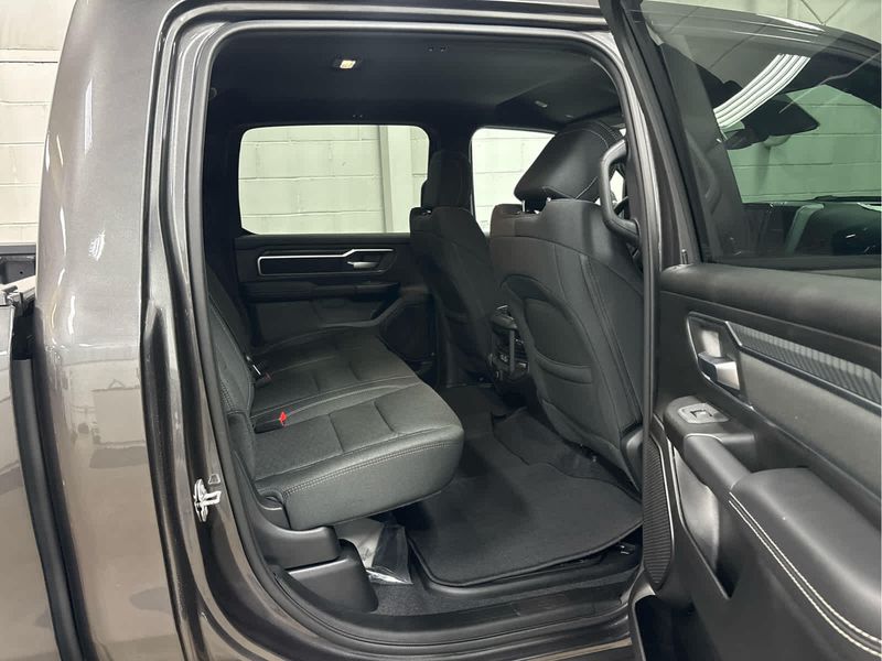 ENGINE: 5.7L V8 HEMI MDS VVT ETORQUE Active Noise Control System, Heavy Duty Engine Cooling, Passive Tuned Mass Damper, GVWR: 7,100 lbs, Dual Rear Exhaust w/Bright Tips, G/T Exhaust, 18 Aluminum Spare Wheel, 33 Gallon Fuel Tank, BIG HORN LEVEL 2 EQUIPMENT GROUP SiriusXM Radio Service, Power Adjustable Pedals, Leather Wrapped Steering Wheel, 12 Touchscreen Display, Glove Box Lamp, Auto Power-Folding Mirrors, 115V Auxiliary Rear Power Outlet, Media Hub w/2 Charge Only USBs, Heated Front Seats, Security Alarm, Black Premium Power Mirrors, Premium Overhead Console, 9 Amplified Speakers w/Subwoofer, Disassociated Touchscreen Display, Secondary Active Grille Shutters, Wireless Charging Pad, Body Color Fender Flares, Remote Tailgate Release, 115V Auxiliary Power Outlet, LED Dome Lamp w/On/Off Switch, Universal Garage Door Opener, 2nd Row In Floor Storage Bins, Sun Visors w/Illuminated Vanity Mirrors, LED Footwell Lighting, Rear Window Defroster, Rear View Auto Dim Mirror, Rear Power Sliding Window, GPS Navigation, NIGHT EDITION Tires: 275/55R20 OWL All Season, Bridgestone Brand Tires, Accent Color Premium Power Mirrors, Exterior Mirrors w/Supplemental Signals, Black Headlamp Bezels, Exterior Mirrors Courtesy Lamps, Grille Black Surround Black Mesh, Auto Power-Folding Mirrors, Wheels: 20 x 9.0 Aluminum Painted Clad, Auto Dim Exterior Driver Mirror, Black Exterior Truck Badging, Anti-Spin Differential Rear Axle, Accent Color Door Handles, Accent Color Tailgate Handle, Black Interior Accents, Dual Exhaust w/Black Tips, Body Color Front Bumper, Body Color Rear Bumper w/Step Pads, Black Tail Lamp Bezels, RAM Grille Badge - Black, Black Painted Exterior Mirrors Caps, TRANSMISSION: 8-SPEED AUTOMATIC (8HP75).