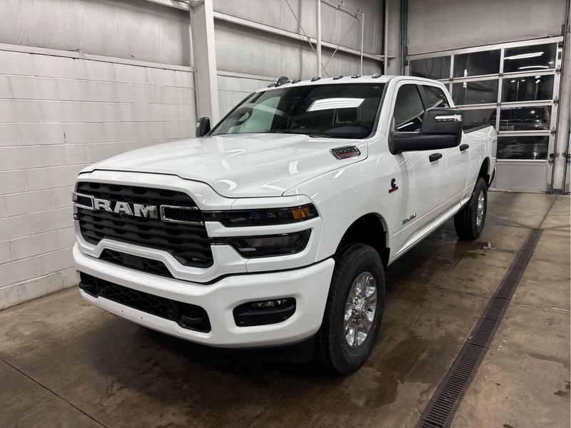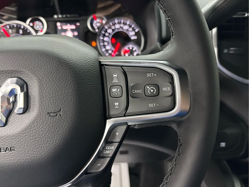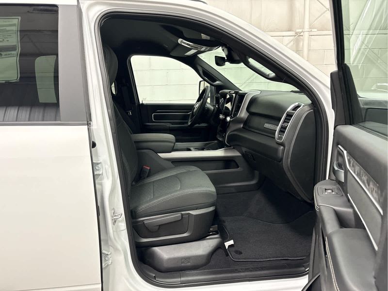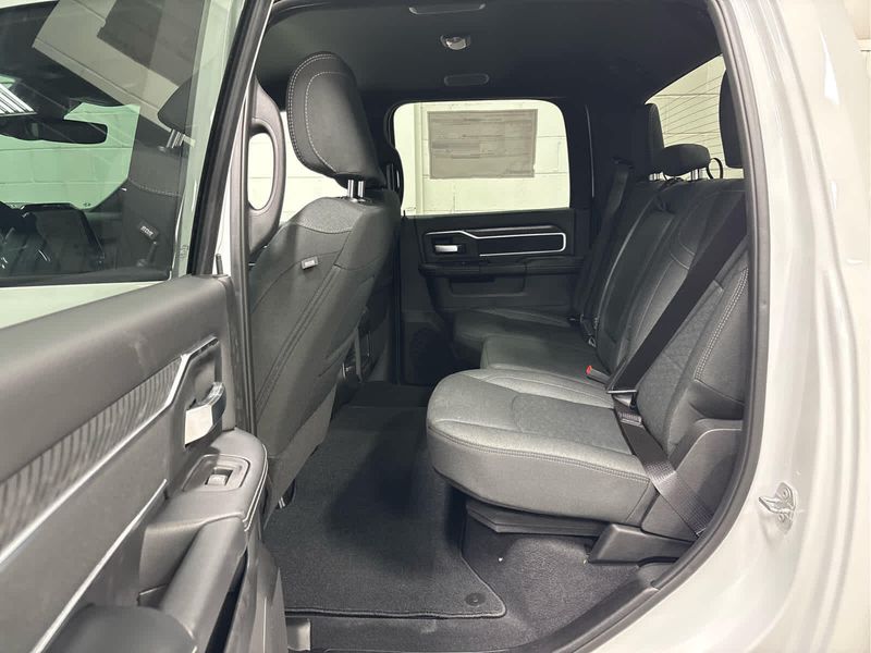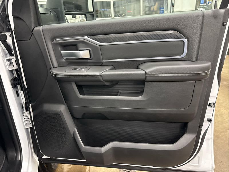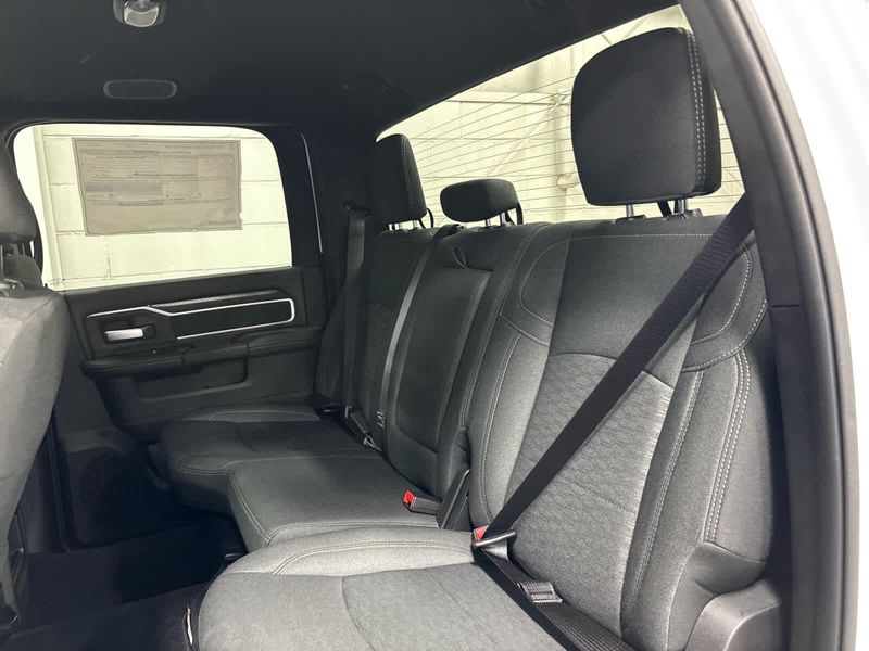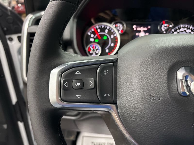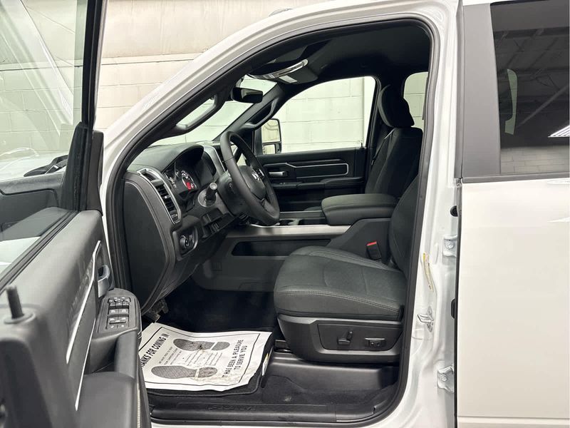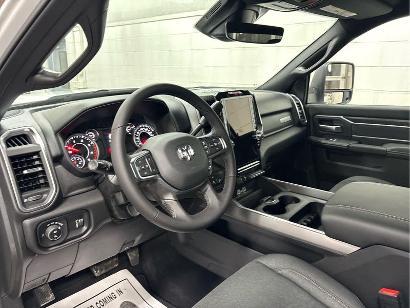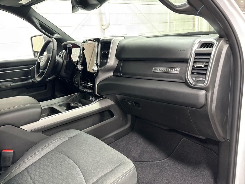 ENGINE: 6.7L I6 CUMMINS HO TURBO DIESEL Selective Catalytic Reduction (Urea), Dual 730 Amp Maintenance Free Batteries, Cummins Turbo Diesel Badge, Heavy Duty Engine Cooling, Diesel Exhaust Brake, Supplemental Heater, 3.42 Axle Ratio, Front Bumper Sight Shields, Capless Fuel Fill w/o Discriminator, GVWR: 11,040 lbs, BIG HORN LEVEL 1 PLUS EQUIPMENT GROUP Emergency Vehicle Alert System (EVAS), 12 Touchscreen Display, Glove Box Lamp, Auto Power-Folding Mirrors, Footwell Courtesy Lamp, Anti-Spin Differential Rear Axle, MOPAR Deployable Bed Step, Alexa Built-In, Forward & Reverse Utility Lights, Locking Lower Glove Box, Remote Start System, 9 Alpine Speakers w/Subwoofer, Disassociated Touchscreen Display, Dual Glove Boxes, 2nd Row In Floor Storage Bins, Rear View Auto Dim Mirror, Rear Dome w/On/Off Switch Lamp, LED Bed Lighting, GPS Navigation, SiriusXM w/360L, Connected Travel & Traffic Services, Foam Bottle Insert (Door Trim Panel), Big Horn IP Badge, Off-Road Info Pages, Trailer Tow Pages, HD Radio, Radio: Uconnect 5 Nav w/12.0 Display, Power Heated Folding Telescopic Mirrors, Steering Wheel Mounted, HEATED SEATS & WHEEL GROUP Heated Steering Wheel, Heated Front Seats, BLACK, PREMIUM CLOTH BUCKET SEATS Bucket Seats, Power Adjust 8-Way Driver Seat, Folding Flat Load Floor Storage, Rear 60/40 Folding Seat, Front Seat Back Map Pockets, Power 2-Way Driver Lumbar Adjust, Full Length Upgraded Floor Console, TRANSMISSION: 8-SPEED TORQUEFLITE HD AUTOMATIC.
