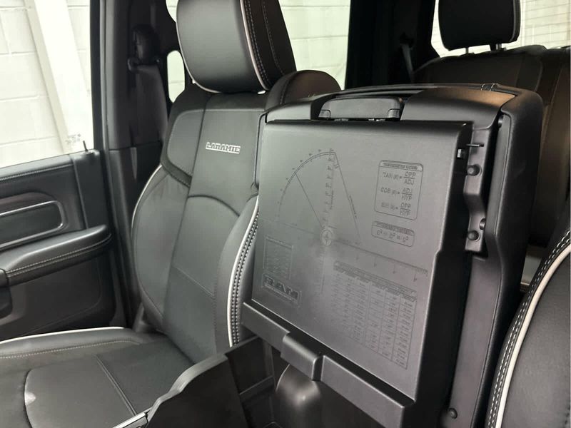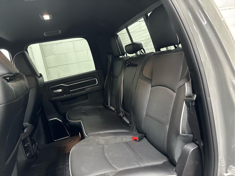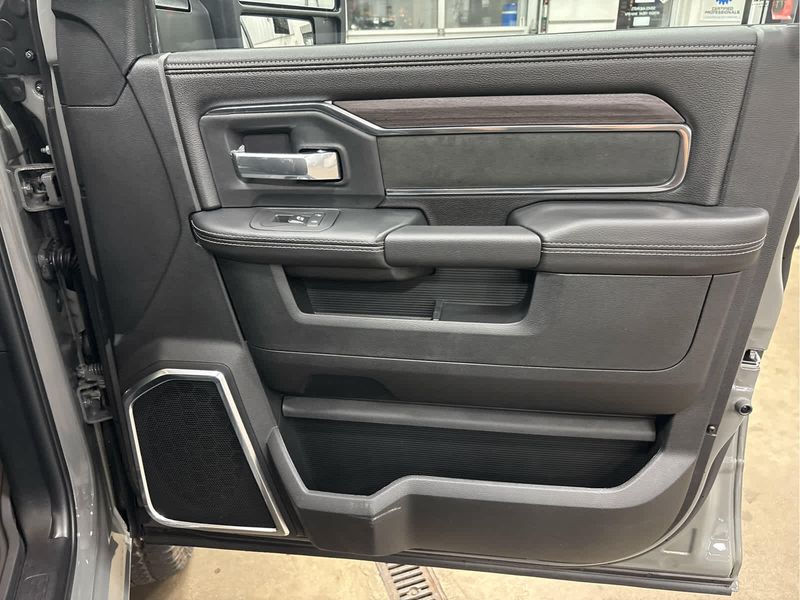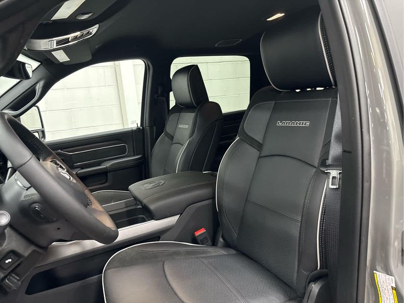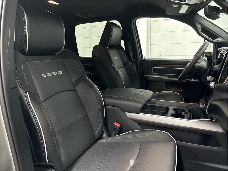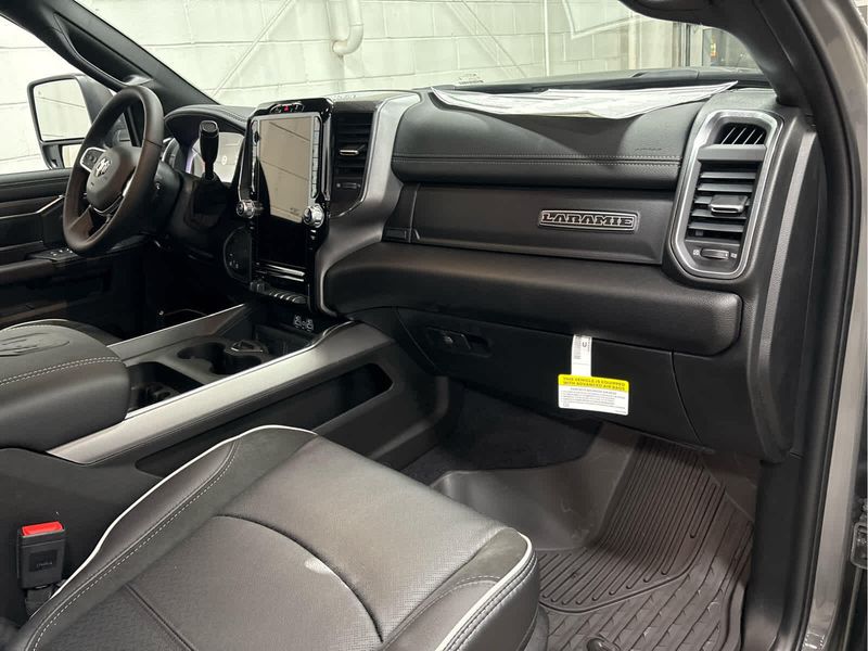 ENGINE: 6.7L I6 CUMMINS HO TURBO DIESEL Selective Catalytic Reduction (Urea), Dual 730 Amp Maintenance Free Batteries, Cummins Turbo Diesel Badge, Heavy Duty Engine Cooling, Diesel Exhaust Brake, Supplemental Heater, 3.42 Axle Ratio, Front Bumper Sight Shields, Capless Fuel Fill w/o Discriminator, GVWR: 11,040 lbs, NIGHT EDITION Tires: LT285/60R20E OWL On/Off Road, Black Exterior Truck Badging, Wheels: 20 x 8.0 Black Painted Aluminum, Gloss Black Grille Billets/Accents, Body Color Grille-Surround, Sport Performance Hood, Black Exterior Mirrors, LARAMIE LEVEL 1 PLUS EQUIPMENT GROUP CTR Stop Lamp w/Cargo View Camera, Rain Sensitive Windshield Wipers, Power Adjustable Pedals w/Memory, LED Bed Lighting, Traffic Sign Recognition, Adaptive Steering System, Auto Dim Exterior Mirror, Anti-Spin Differential Rear Axle, Heated Second Row Seats, Drowsy Driver Detection, MOPAR Deployable Bed Step, Foam Bottle Insert (Door Trim Panel), Active Lane Management System, Power Heated Fold Telescopic Mirrors w/Memory, MOPAR Spray In Bedliner, Remote Tailgate Release, Auto High Beam Headlamp Control, Exterior Mirrors w/Memory, 2nd Row In Floor Storage Bins, Auto Dim Exterior Passenger Mirror, Auto Adjust In Reverse Exterior Mirrors, MOPAR FRONT & REAR RUBBER FLOOR MATS, TRANSMISSION: 8-SPEED TORQUEFLITE HD AUTOMATIC, BLACK, LEATHER TRIMMED BUCKET SEATS Bucket Seats, Dual Wireless Charging Pad, Ventilated Front Seats, Radio/Driver Seat/Mirrors/Pedals Memory, Full Length Upgraded Floor Console.