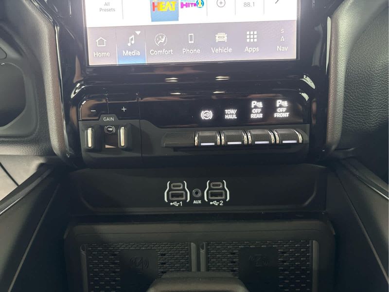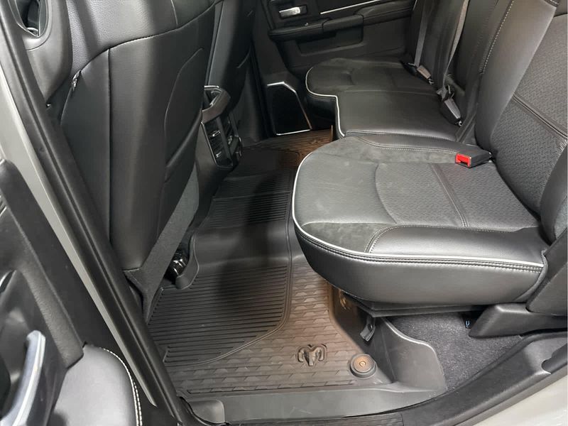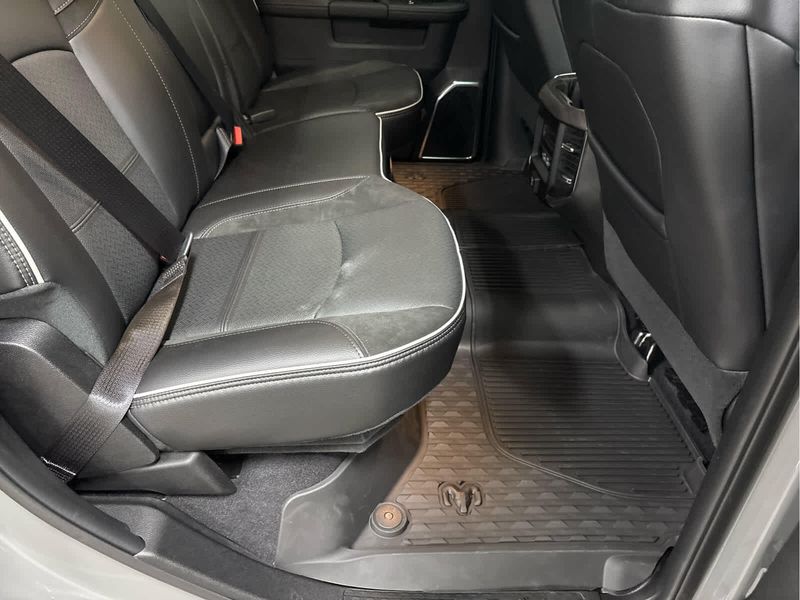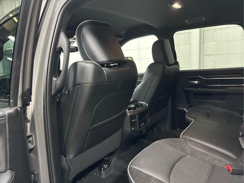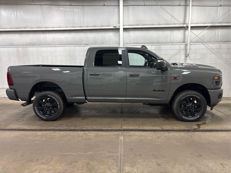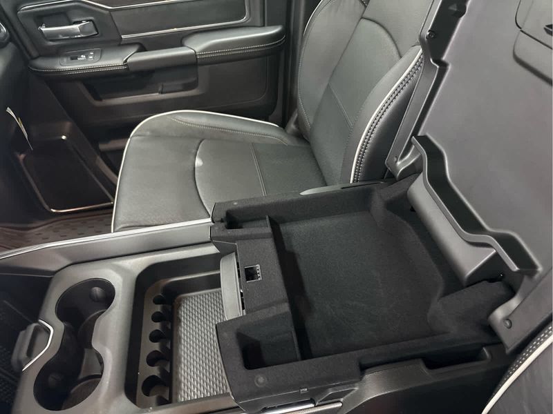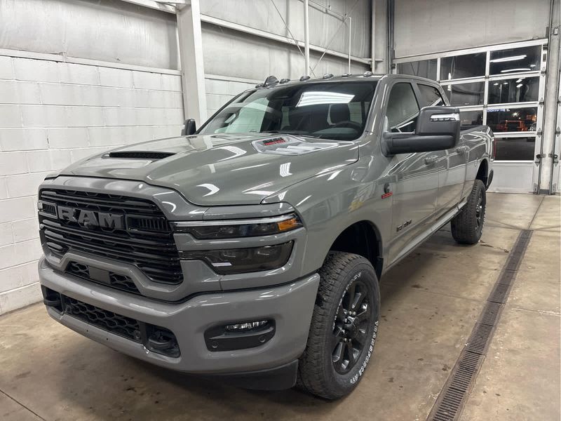 ENGINE: 6.7L I6 CUMMINS HO TURBO DIESEL Selective Catalytic Reduction (Urea), Dual 730 Amp Maintenance Free Batteries, Cummins Turbo Diesel Badge, Heavy Duty Engine Cooling, Diesel Exhaust Brake, Supplemental Heater, 3.42 Axle Ratio, Front Bumper Sight Shields, Capless Fuel Fill w/o Discriminator, GVWR: 11,040 lbs, NIGHT EDITION Tires: LT285/60R20E OWL On/Off Road, Black Exterior Truck Badging, Wheels: 20 x 8.0 Black Painted Aluminum, Gloss Black Grille Billets/Accents, Body Color Grille-Surround, Sport Performance Hood, Black Exterior Mirrors, LARAMIE LEVEL 1 PLUS EQUIPMENT GROUP CTR Stop Lamp w/Cargo View Camera, Rain Sensitive Windshield Wipers, Power Adjustable Pedals w/Memory, LED Bed Lighting, Traffic Sign Recognition, Adaptive Steering System, Auto Dim Exterior Mirror, Anti-Spin Differential Rear Axle, Heated Second Row Seats, Drowsy Driver Detection, MOPAR Deployable Bed Step, Foam Bottle Insert (Door Trim Panel), Active Lane Management System, Power Heated Fold Telescopic Mirrors w/Memory, MOPAR Spray In Bedliner, Remote Tailgate Release, Auto High Beam Headlamp Control, Exterior Mirrors w/Memory, 2nd Row In Floor Storage Bins, Auto Dim Exterior Passenger Mirror, Auto Adjust In Reverse Exterior Mirrors, MOPAR FRONT & REAR RUBBER FLOOR MATS, TRANSMISSION: 8-SPEED TORQUEFLITE HD AUTOMATIC, BLACK, LEATHER TRIMMED BUCKET SEATS Bucket Seats, Dual Wireless Charging Pad, Ventilated Front Seats, Radio/Driver Seat/Mirrors/Pedals Memory, Full Length Upgraded Floor Console.