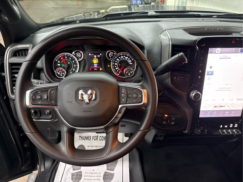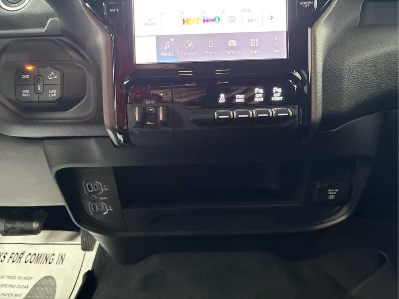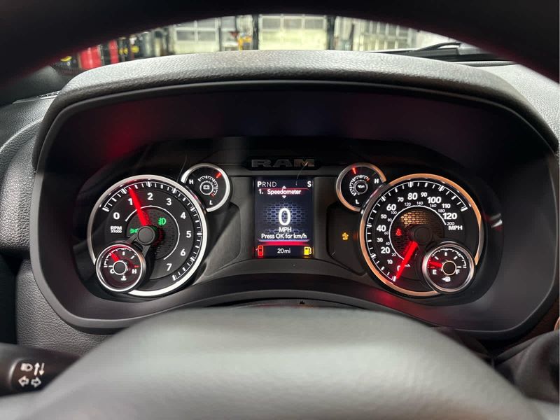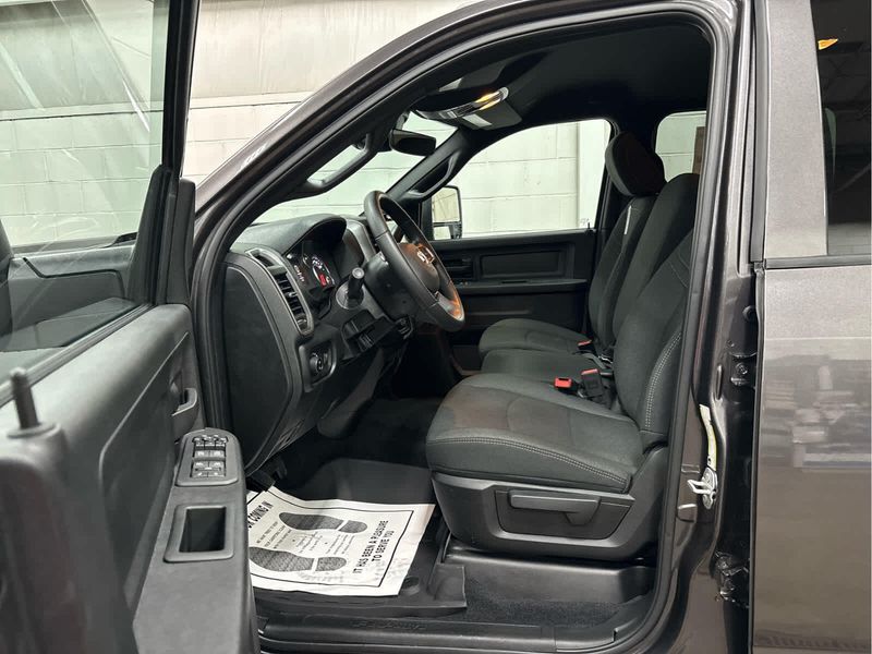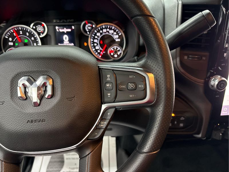 QUICK ORDER PACKAGE 2UB WARLOCK Engine: 6.4L V8 HEMI HD, Transmission: 8-Speed Auto (8HP75-LCV), Auto Power-Folding Mirrors, Exterior Mirrors w/Heating Element, Front Performance Tuned Shock Absorbers, Anti-Spin Differential Rear Axle, Mirror Running Lights, Warlock Decal, Carpet Floor Covering, Power-Adjustable Convex Aux Mirrors, Forward & Reverse Utility Lights, Power Heated Folding Telescopic Mirrors, Exterior Mirrors w/Supplemental Signals, Exterior Mirrors Courtesy Lamps, Rear Performance Tuned Shock Absorbers, Power Adjust Mirrors, Goodyear Brand Tires, 18 Steel Spare Wheel, Black Wheel Flares, Power Telescoping Mirrors, Hill Assist, TRADESMAN LEVEL 1 EQUIPMENT GROUP Convenience Group, Rear View Auto Dim Mirror, Rear Power Sliding Window, Emergency Vehicle Alert System (EVAS), 12 Touchscreen Display, Tinted Acoustic Windshield Glass, GPS Navigation, SiriusXM w/360L, Connected Travel & Traffic Services, Exterior 115V AC Outlet, Alexa Built-In, Off-Road Info Pages, Trailer Tow Pages, 400W Inverter, Disassociated Touchscreen Display, HD Radio, Radio: Uconnect 5 Nav w/12.0 Display, Air Conditioning ATC w/Dual Zone Control, 115V Auxiliary Front Power Outlet, MOPAR BLACK TUBULAR SIDE STEPS, BED CONVENIENCE GROUP MOPAR Spray In Bedliner, LED Bed Lighting, TRANSMISSION: 8-SPEED AUTO (8HP75-LCV) (STD), ENGINE: 6.4L V8 HEMI HD (STD). Excellent Condition