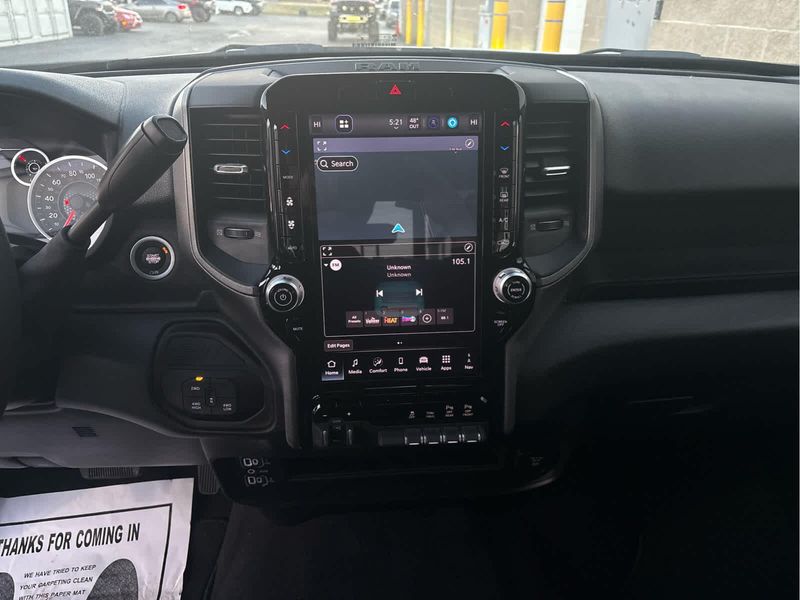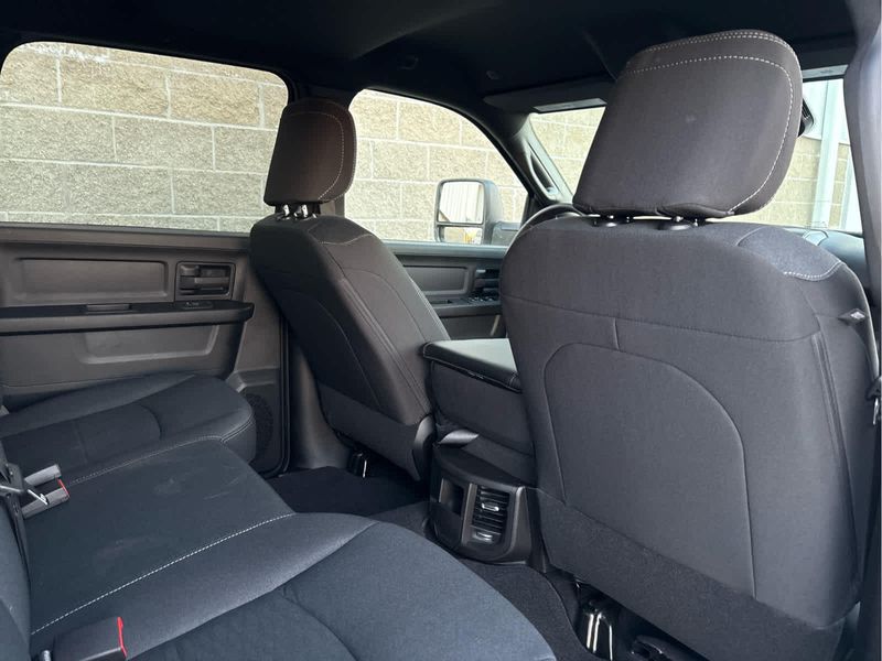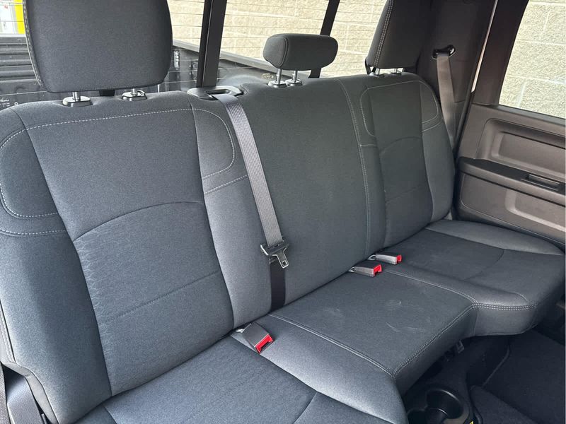 Convenience Group, Emergency Vehicle Alert System (EVAS), 12 Touchscreen Display, Anti-Spin Differential Rear Axle, Mirror Running Lights, Exterior 115V AC Outlet, Alexa Built-In, Power-Adjustable Convex Aux Mirrors, Disassociated Touchscreen Display, Matte Black Mesh Grille w/Chrome, 115V Auxiliary Front Power Outlet, Center Hub, Tires: LT275/70R18E BSW AS, Rear View Auto Dim Mirror, Rear Power Sliding Window, Tinted Acoustic Windshield Glass, GPS Navigation, Bright Rear Bumper, Exterior Mirrors w/Heating Element, Chrome Grille Surround, MOPAR Black Tubular Side Steps, SiriusXM w/360L, Connected Travel & Traffic Services, Wheels: 18 x 8.0 Steel Chrome Clad, Carpet Floor Covering, Off-Road Info Pages, Trailer Tow Pages, 400W Inverter, HD Radio, Power Heated Folding Telescope Mirrors, MOPAR Spray In Bedliner, LED Bed Lighting, (STD), (STD), BLACK, CLOTH 40/20/40 BENCH SEAT. Excellent Condition