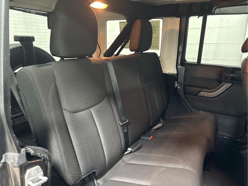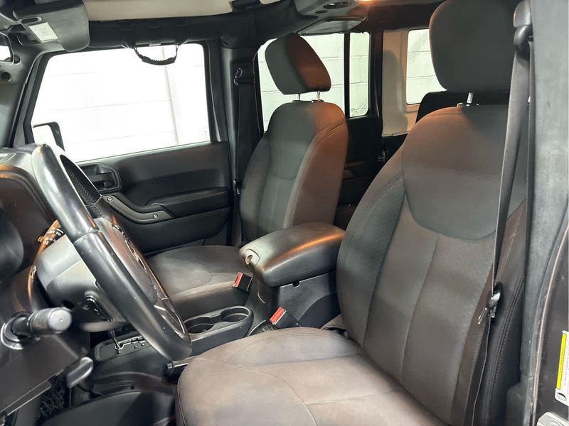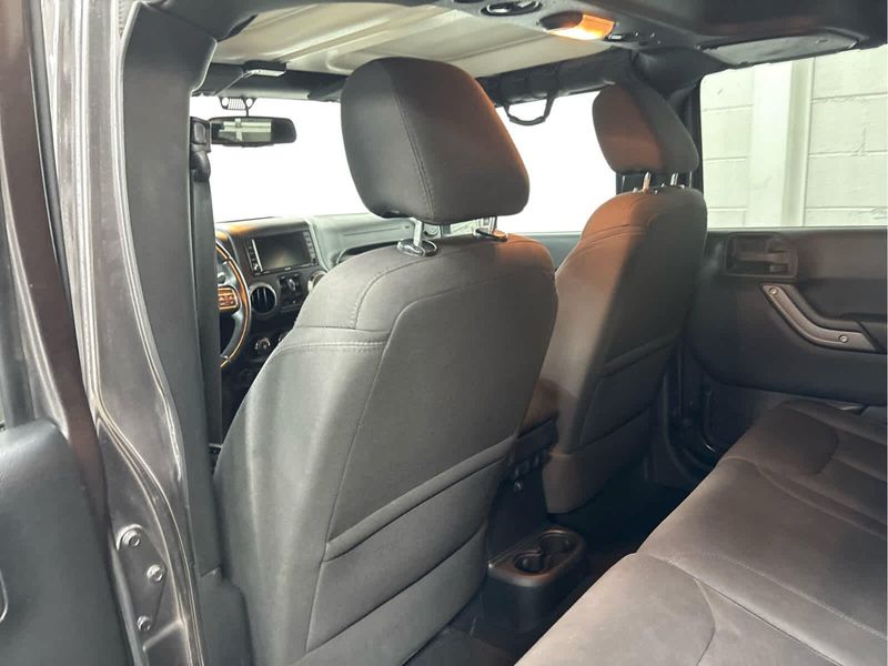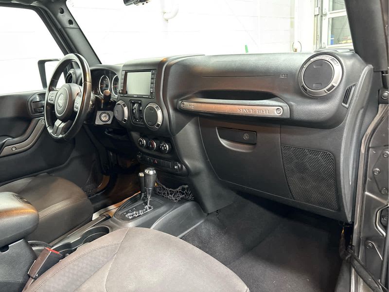 Engine: 3.6L V6 24V VVT, Transmission: 5-Speed Automatic (W5A580), Auto Dim Mirror w/Reading Lamp, Front 1-Touch Down Power Windows, Power Heated Mirrors, Wheels: 17 x 7.5 Aluminum, Tires: 17, Leather Wrapped Steering Wheel, Chrome/Leather Wrapped Shift Knob, Power Convenience Group, Deep Tint Sunscreen Windows, Security Alarm, Power Locks, Remote Keyless Entry, Tip Start, Hill Descent Control, Freedom Panel Storage Bag, Rear Window Defroster, Rear Window Wiper/Washer, Tinted Rear Quarter & Liftgate Windows, Delete Sunrider Soft Top, Class II Receiver Hitch, 3.73 Rear Axle Ratio, Trailer Tow w/4-Pin Connector Wiring, Vehicle Information Center, Remote USB Port, Uconnect Voice Command w/Bluetooth, Tire Pressure Monitoring Display, Remote USB Port, TUBULAR SIDE STEPS, ANTI-SPIN DIFFERENTIAL REAR AXLE, For More Info Call 888-539-7474, (STD).