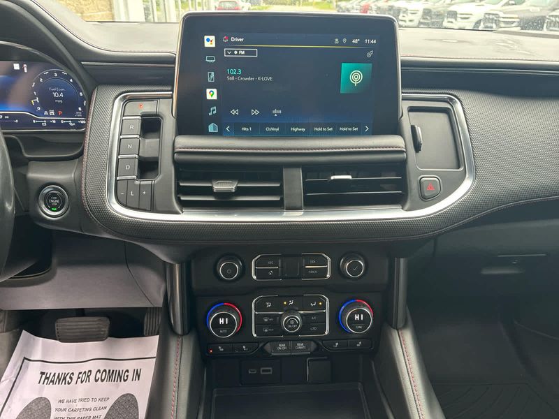 includes (WPD) Driver Alert Package content, (UV2) HD Surround Vision, (UKK) Rear Pedestrian Alert, (A45) memory settings, (DXR) outside heated power-adjustable, power-folding, body-color mirrors with driver-side auto-dimming and integrated turn signal indicators, (N38) power tilt and telescopic steering column, (KI3) heated steering wheel, (KA6) second row outboard heated seats, (ATT) second row power 60/40 split-folding bench seats and (AS8) third row power 60/40 split-folding bench seats Vehicles built prior to December 6, 2021, include heated steering wheel. Certain vehicles built on or after December 6, 2021, will be forced to include (00G) Not Equipped with Heated Steering Wheel, which removes heated steering wheel. Vehicles built prior to March 14, 2022 and after April 17, 2022, with express-open and close and power sunshade, SEATS, SECOND ROW BUCKET, POWER RELEASE, (dealer-installed), 10.2 diagonal HD color touchscreen, includes multi-touch display, AM/FM stereo, Bluetooth streaming audio for music and most phones; featuring wireless Android Auto and Apple CarPlay capability for compatible phones, advanced voice recognition, in-vehicle apps, personalized profiles for infotainment and vehicle settings.) (STD), Vehicles built prior to December 6, 2021 and after March 27, 2022, include heated steering wheel. Certain vehicles built on or after December 6, 2021 through March 27, 2022, will be forced to include (00G) Not Equipped with Heated Steering Wheel, which removes heated steering wheel. See dealer for details or the window label for the features on a specific vehicle.), with Dynamic Fuel Management, Direct Injection and Variable Valve Timing, includes aluminum block construction (420 hp [313 kW] @ 5600 rpm, 460 lb-ft of torque [624 Nm] @ 4100 rpm), electronically controlled with overdrive, includes Traction Select System including tow/haul (Standard with (L84) 5.3L EcoTec3 V8 engine or (L87) 6.2L EcoTec3 V8 engine only.) (STD), includes (UKC) Lane Change Alert with Side Blind Zone Alert and (UFG) Rear Cross Traffic Alert.