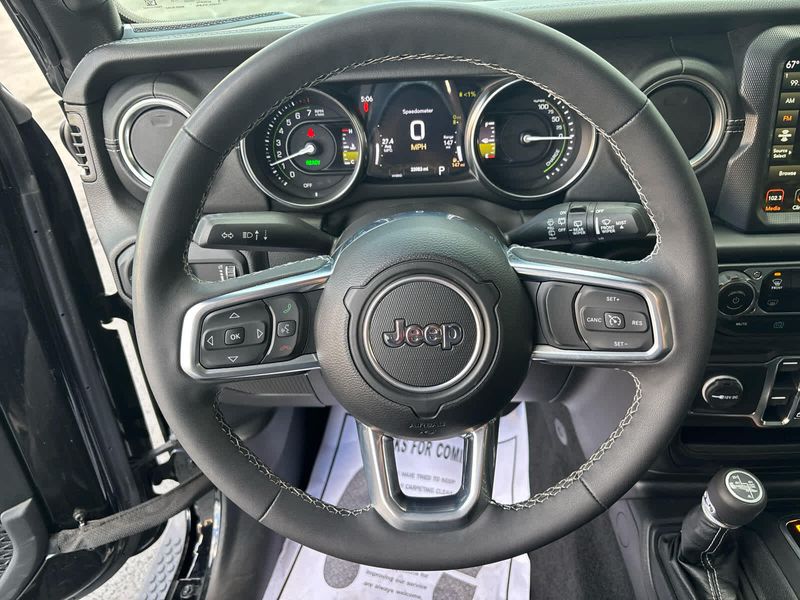 BLACK 3-PIECE HARD TOP Freedom Panel Storage Bag, Rear Window Defroster, Rear Window Wiper/Washer, COLD WEATHER GROUP Heated Steering Wheel, Remote Start System, Heated Front Seats, TRANSMISSION: 8-SPEED AUTO 8P75PH PHEV (STD), ENGINE: 2.0L I4 DOHC DI TURBO PHEV (STD).