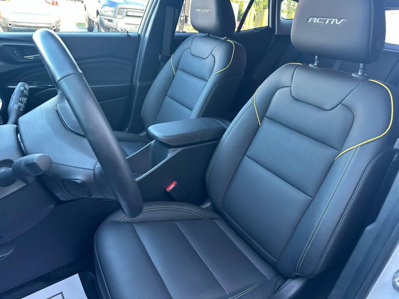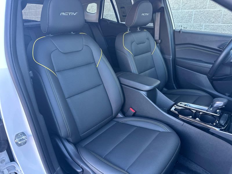 Heated Driver Seat, Back-Up Camera, Onboard Communications System, Aluminum Wheels, Remote Engine Start Chevrolet ACTIV with Summit White exterior and Jet Black with Yellow accents interior features a 3 Cylinder Engine with 137 HP at 5000 RPM*.